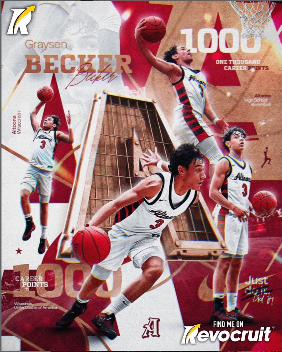 1,000-point milestone. Congrats to Class of 2027 6’2” guard Graysen Becker of the Wisconsin Playmakers on reaching 1,000 career points for Altoona basketball. A testament to the work.