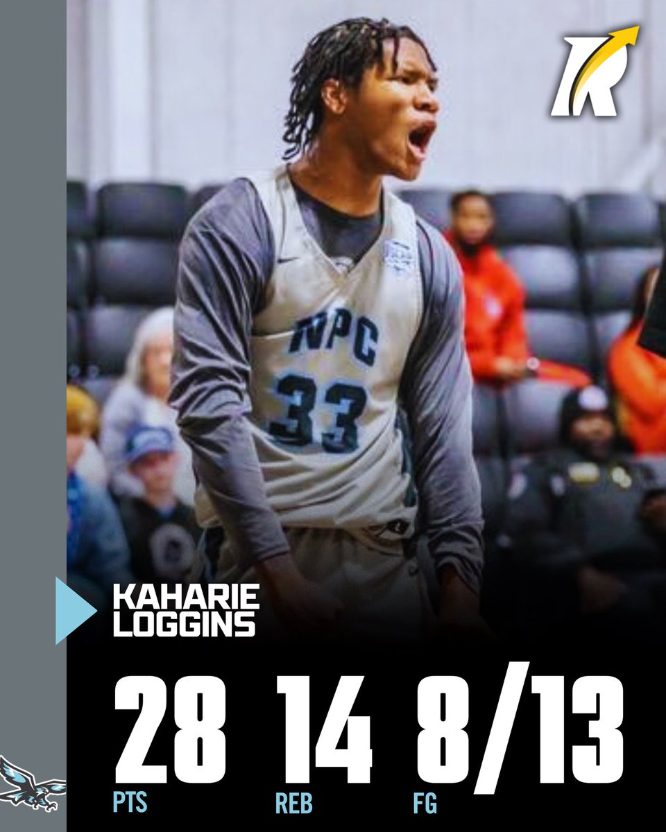 JC: 6’6 sophomore guard Kaharie Loggins (@Kaharie34) of National Park College delivered an incredible double-double with 28 points and 14 rebounds, while shooting 8-for-13 from the field in a 106–101 victory.