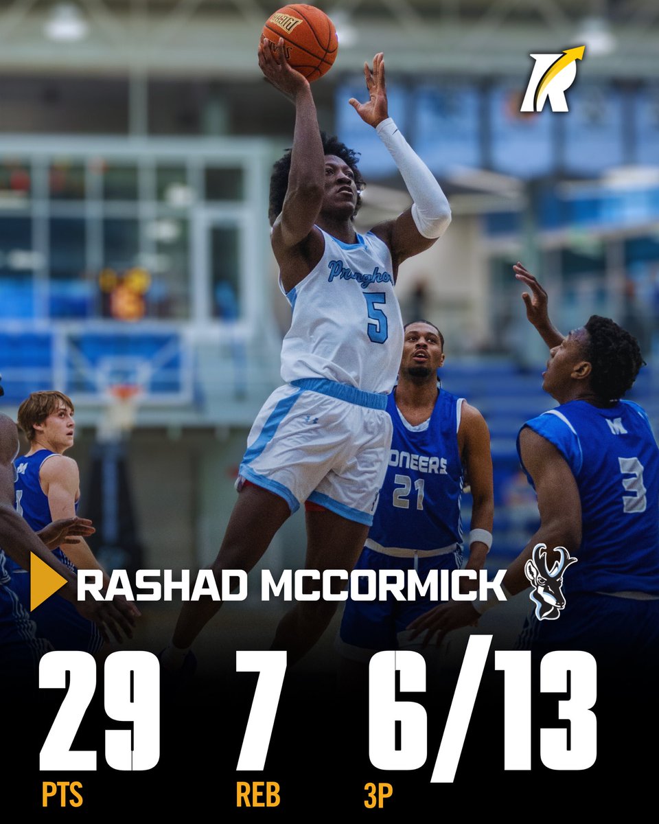 JC: 6’6 sophomore guard Rashad McCormick of Gillette College delivered 29 points, 7 rebounds, 2 steals, shooting 6-for-13 from three in a 74–73 victory.