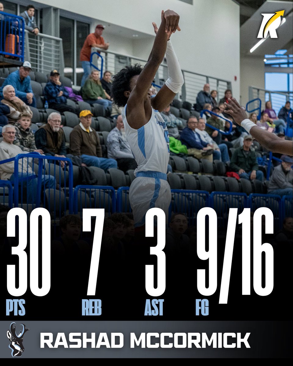 JC: 6’5 sophomore guard Rashad McCormick of Gillette College delivered a strong 30-point performance, adding 7 rebounds and 3 assists while shooting 9-for-16 from the field in an 82–73 victory.