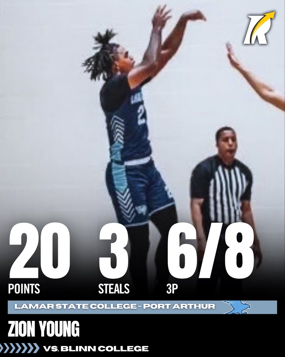 JC: 6’4 sophomore guard Zion Young (@zionyoungg) of Lamar State College – Port Arthur delivered 20 points, 3 steals, shooting 6 for 8 from beyond the arc and 7 for 14 from the field in a 66–65 victory.