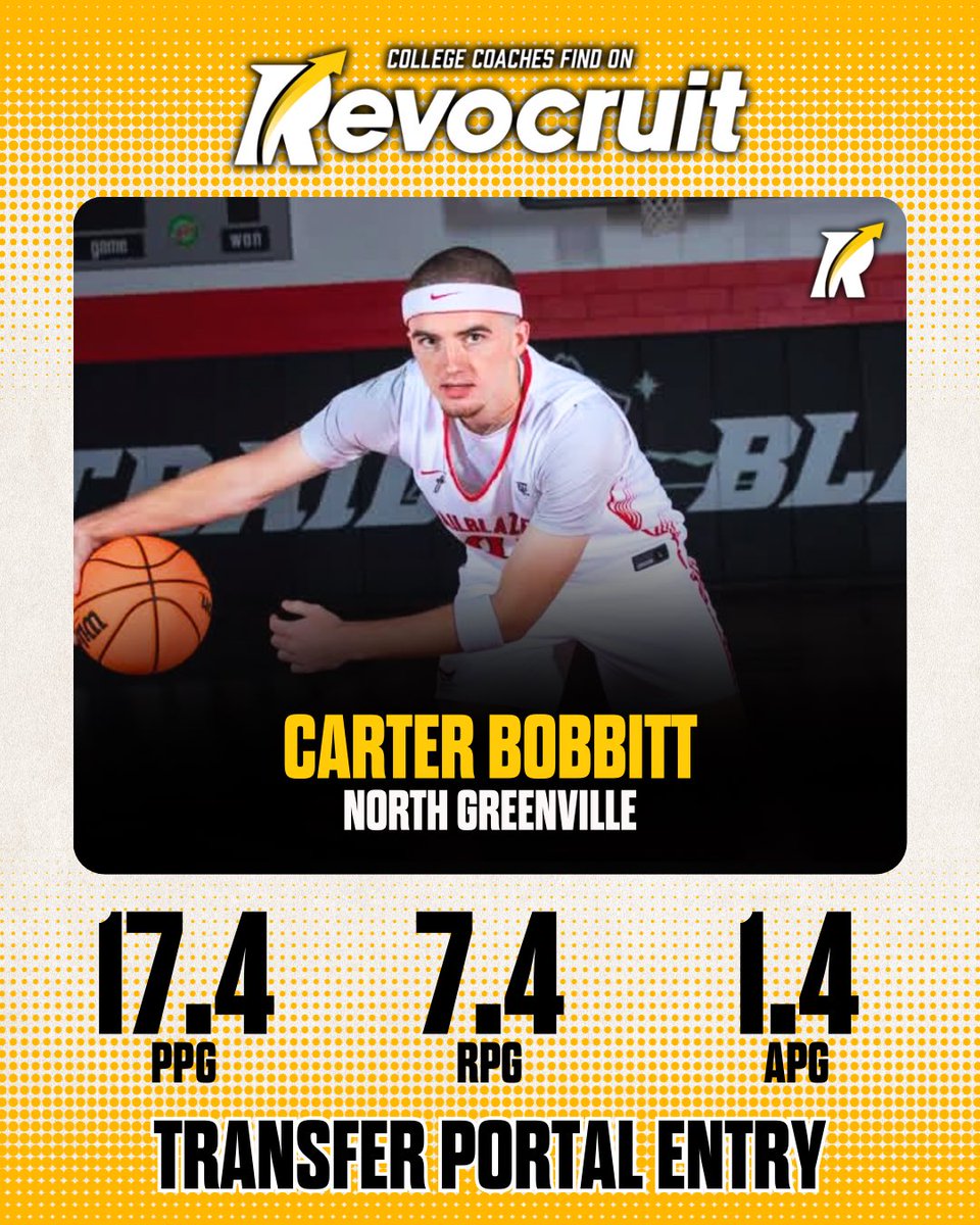 TP Latest: Carter Bobbitt, 6’4” guard out of North Greenville, has entered the Transfer Portal after averaging 17.4 points, 7.4 boards, and 1.4 assists per game. A physical, productive guard with size who rebounds at a high level and consistently scores.