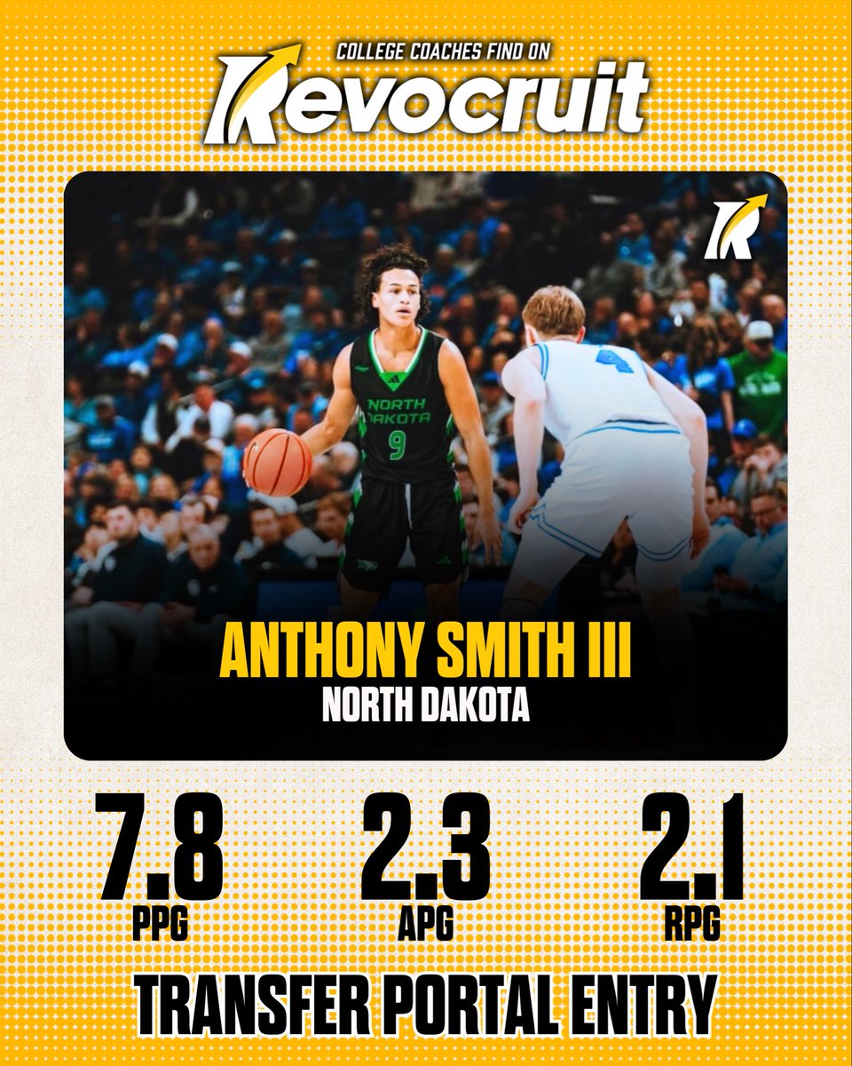 TP Latest: Anthony Smith III, 6’1” guard out of North Dakota, has entered the Transfer Portal after averaging 7.8 points, 2.3 assists, and 2.1 boards per game. A quick, steady guard who can facilitate, score when needed, and bring backcourt depth.